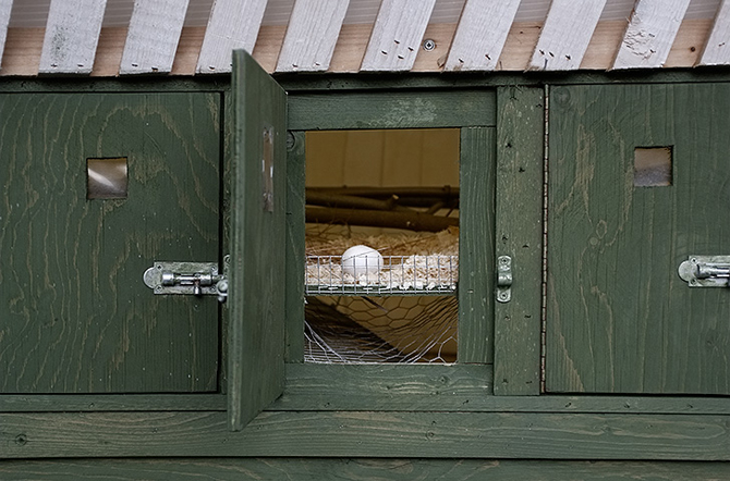 Med en gracil tyngd vilar det skalvita hönshuset i den bohuslänska arkipelagen. Det utgör en mjukt böljande skärm mot skogsbrynet och rymmer knappa dussinet hönor. Inspirationen är hämtadfrån hur hönsmamman burrar upp och breder ut sin vinge till skydd för sina kycklingar och resultatet ger ett intryck av både något som skyddar men även en känsla av fjäderlätthet. För husets form av en lyftad vinge för också tanken till de omkringsvävande sjöfåglarna. Huset är konstruerat i trä med möjlighet att lätta sköta om hönorna.